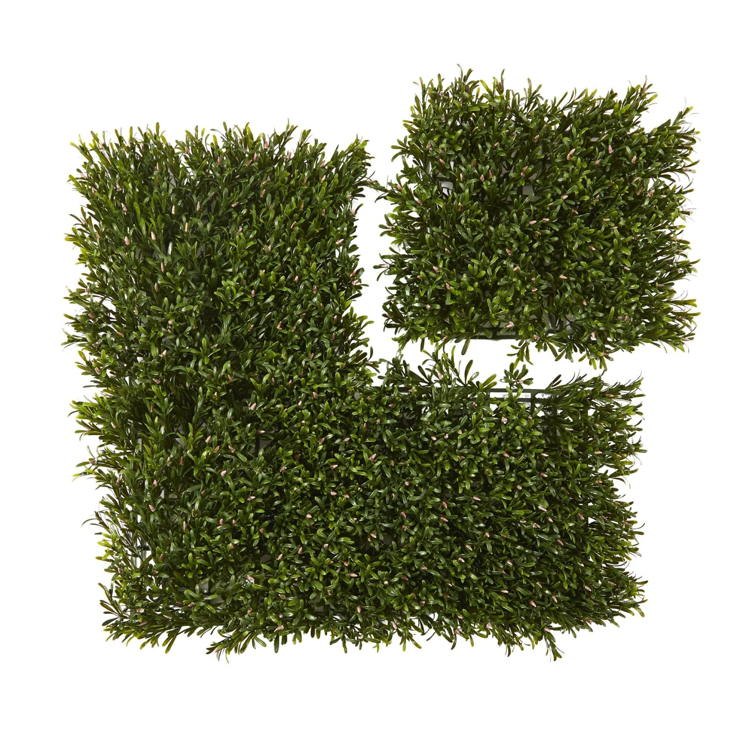 Get creative incorporating natural, year-round greenery with this set of wall mats made from realistic artificial greenery; each is created with a rich overgrowth of rosemary foliage that looks incredibly lifelike with its naturally occurring details. Designed with UV Resistance, it allows you the ability to arrange and display them individually or collectively in either indoor and/or outdoor environments without suffering damage from the natural elements. Available in a set of four, each of these artificial mats measure 10.5” x 10.5”.