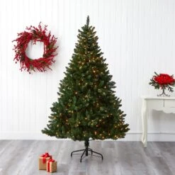 7’ Northern Rocky Spruce Artificial Christmas Tree With 400 Clear Lights And 1330 Bendable Branches