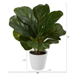 11” Fiddle Leaf Artificial Plant In White Planter (Real Touch)