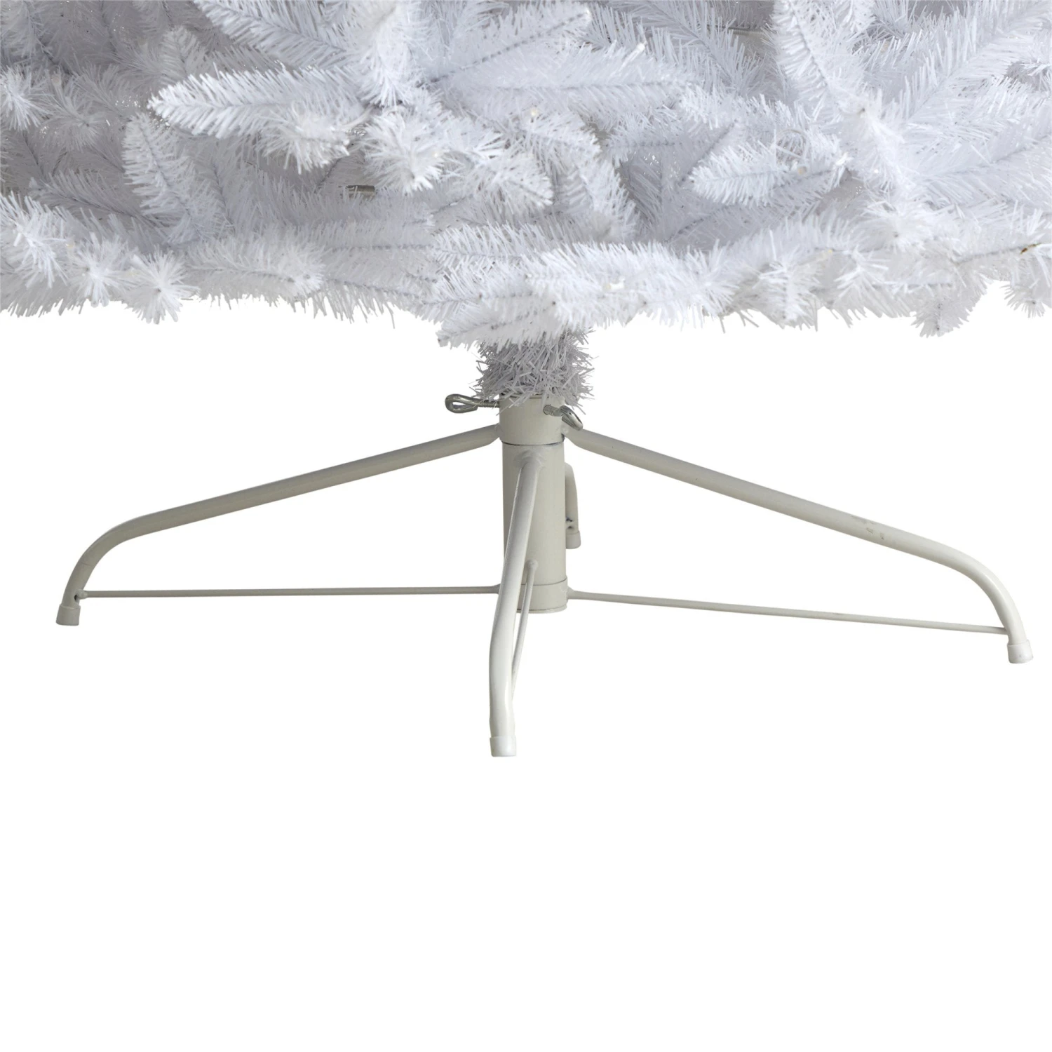 Are you dreaming of a white Christmas? Fulfill all your dreams with this white artificial Christmas tree. Inspired by nature, this tree has a slim silhouette that mimics its real counterparts’ natural foliage and texture. With 2420 bendable branches, you can easily display all your favorite ornaments. Save time and money with the pre-strung 800 LED lights. Standing 10′ from a metal stand, curate in any area. Perfect for a family room, living room, or home office.