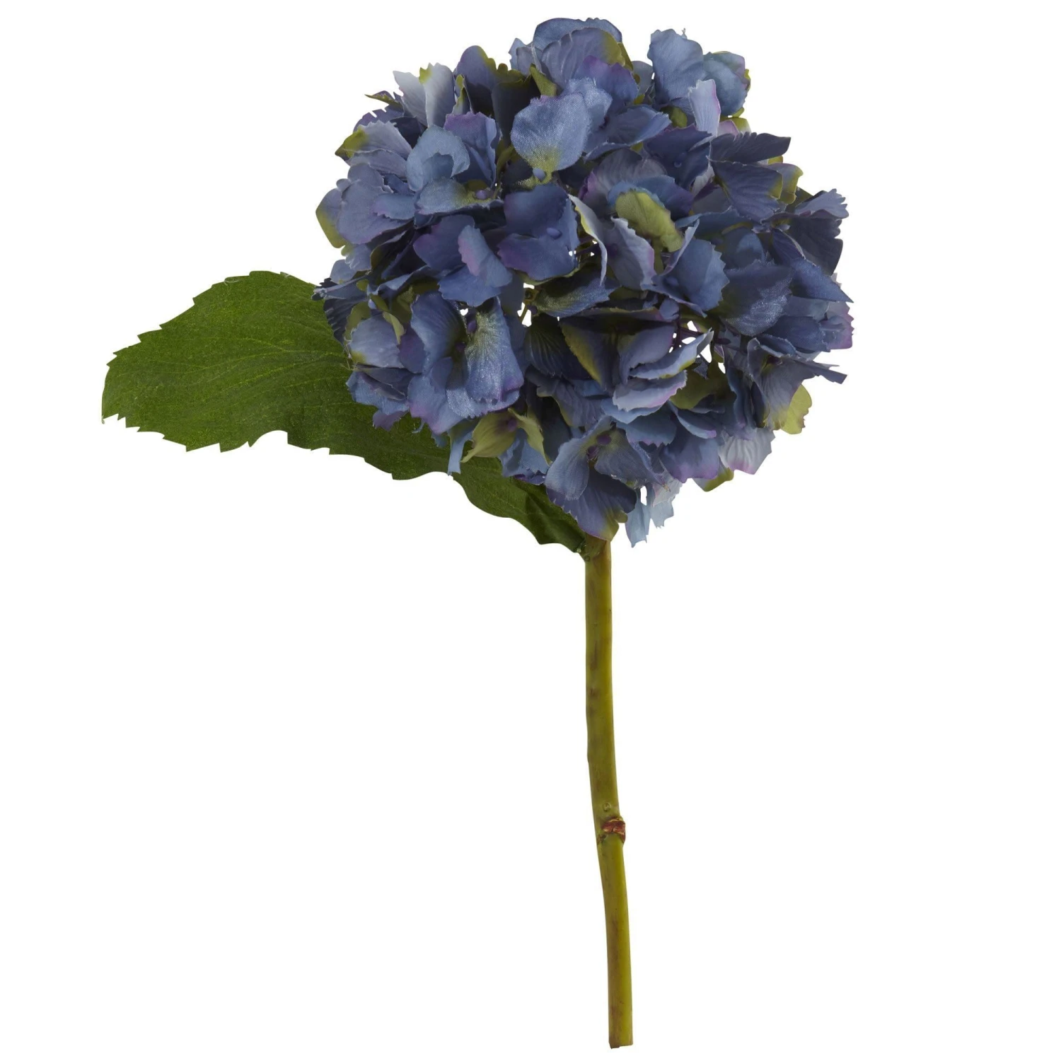 This hydrangea artificial flower will complement your existing faux floral arrangements. The 12-inch stem is topped with a tight cluster of bold lifelike blooms accented with a single realistic green leaf. You can also bundle these together in a crystal vase in your dining room for a colorful spring arrangement. Arrives with 12 individual flower stems.
