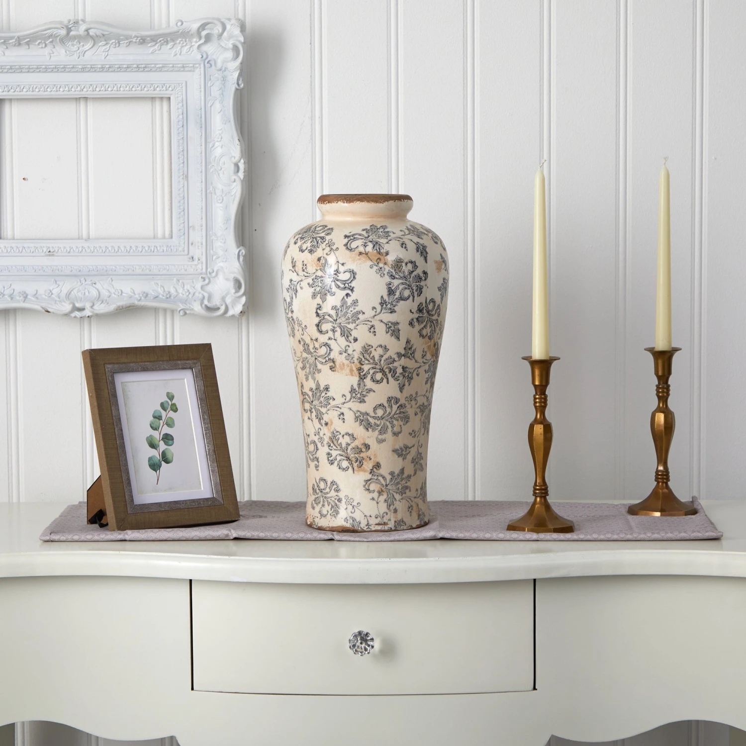 Arrange your fauxbolous flowers in this floral print urn (set of 1). The vintage ceramic planter has a homey feel with its palette of neutral colored flowers against a rugged backdrop. DIY and have fun mix-matching for a country chic look that delivers that fresh farm to home style in an elegant way. No drainage holes and indoor use only.