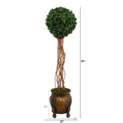 63” English Ivy Single Ball Artificial Topiary Tree In Decorative Planter (Indoor/Outdoor)