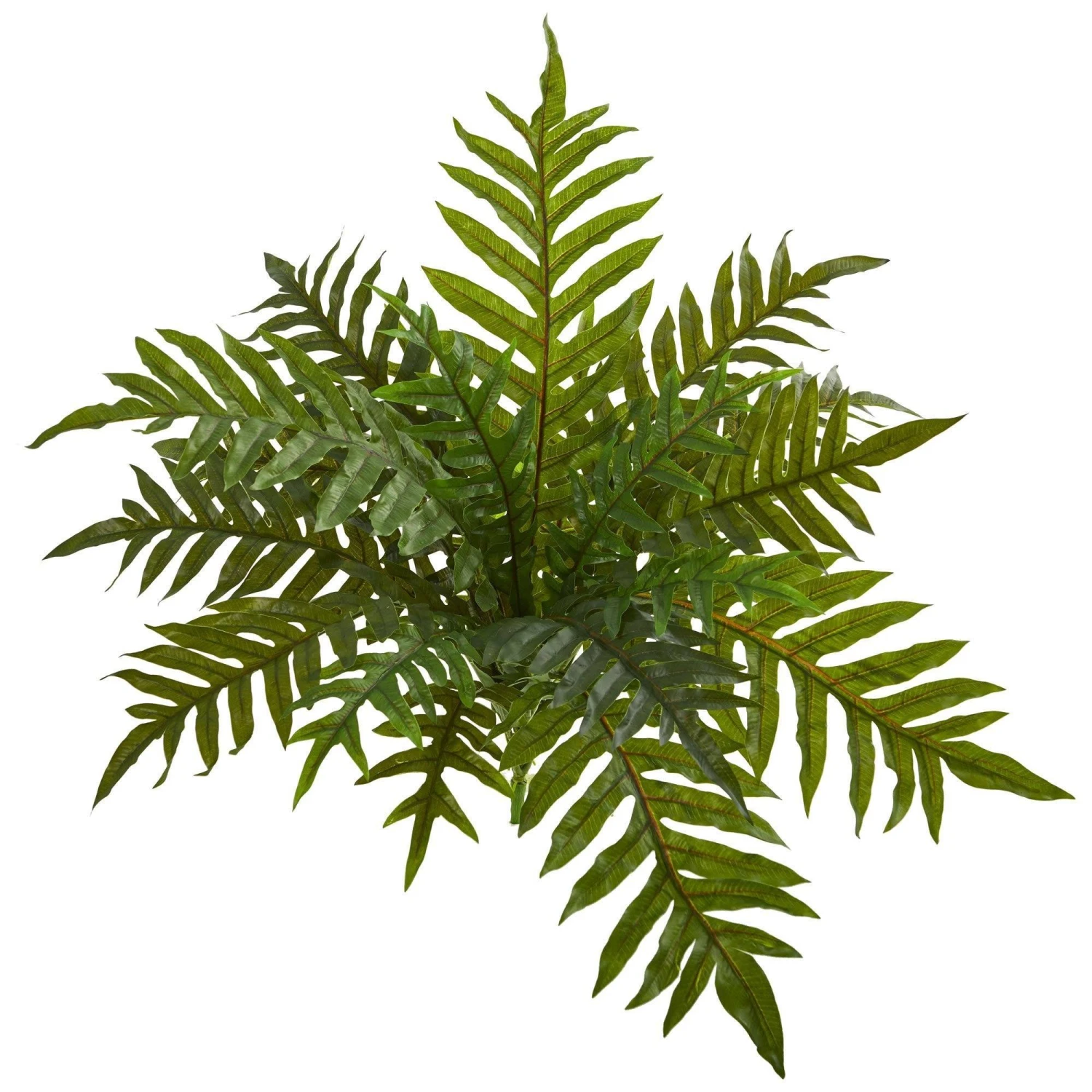 Gently splaying outwards, this 23-inch hares foot fern artificial plant will bring a lush, tropical feel to your indoor space. It features copious light and dark green lifelike leaves that feel real to the touch. Settle this set of three in a glazed ceramic vase and position it beside your entertainment system or couch to bring a bright, natural look to these spaces.