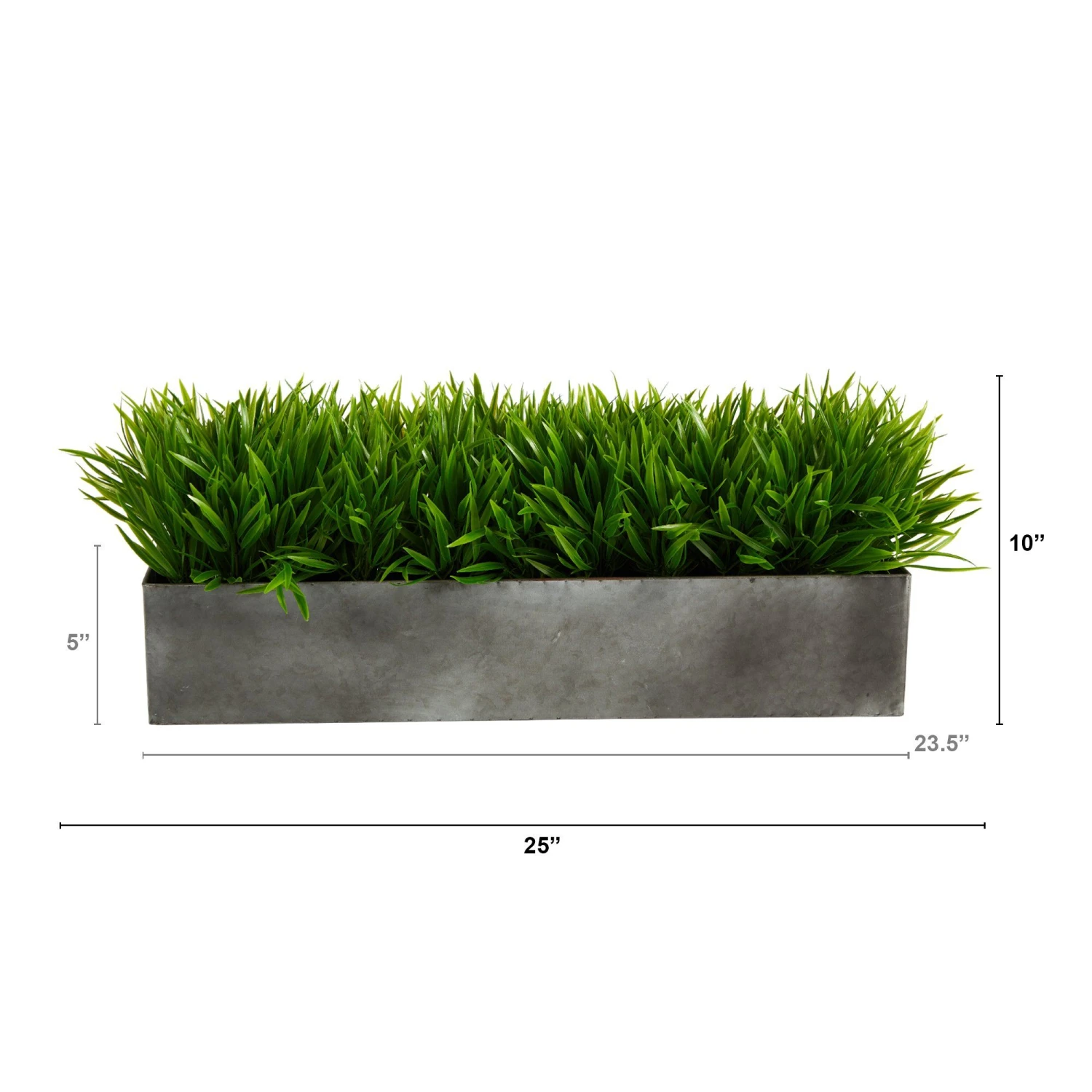 Add a horizontal touch of green to your living areas with this Wild Grass Artificial Plant. Lifelike, green grass blades are housed together in a decorative planter for a crisp, clean look. If you’re looking to update your office, look no further. This faux plant brings an elevated and sophisticated look that requires zero maintenance or upkeep, allowing you to focus on what matters. Measures 25″ in width from a decorative planter, curate in any desktop that needs some greenery.
