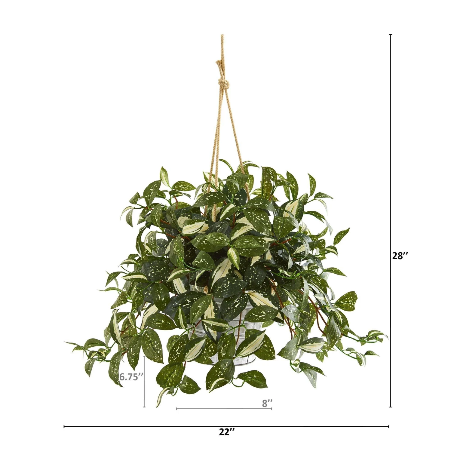 Spruce up vertical spaces in your home with the help of this artificial Florida beauty plant showcasing an overgrowth of variegated silk leaves that tendril down from its hanging tin bucket. Reaching 28” long, this rich plant can easily freshen up bare windows and corners without the need for maintenance.