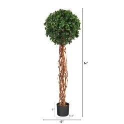 51” Boxwood Triple Ball Topiary Artificial Tree In White Planter With Stand (Indoor/Outdoor