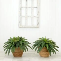 23” Artificial Boston Fern Plant With Handmade Jute & Cotton Basket With Handles DIY KIT – Set Of 2