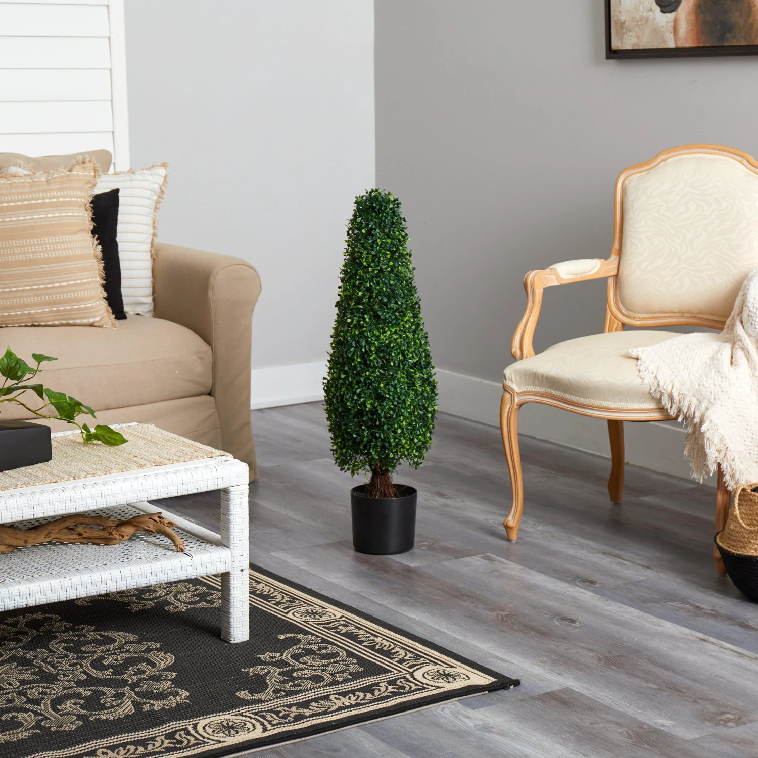 The boxwood is a classic “decorating hedge”, and why not? It’s pretty, dense leaves make for perfect canvas for a talented horticulturist sporting a trimmer. Here’s a boxwood that’s trimmed into what’s called a “tower topiary” shape, and ready to enhance your home or office décor. Best of all, this is an indoor/outdoor decoration, and fully UV resistant.