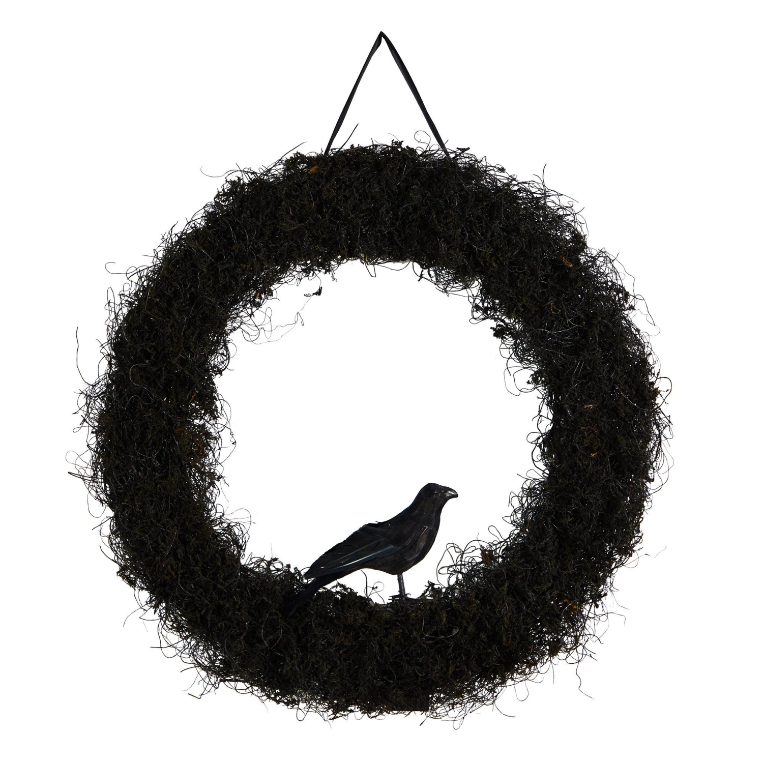 Are you looking to get spooky this Halloween? Wish to scare all the ghosts? This raven inspired black wreath, will add a festive, yet sleek touch to any room. Like a costume, dress any area of your home by darkening spaces in need of a little scary touch. With a diameter of 30″ house in any area that needs a festive touch.