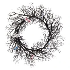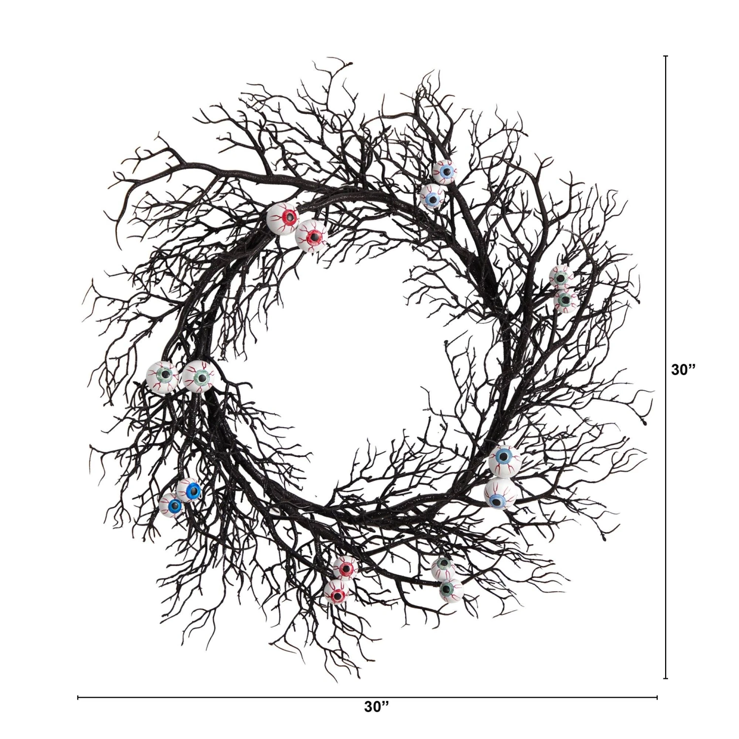 Keep a wondering eye throughout Halloween with this spooky eyeballs wreath. The twig silhouette is adorned with eyeballs and brings a festive touch to any space during Halloween. With a dimension of 30″ add to any area in need of an extra pair of eyes. Add to a bare wall or door.