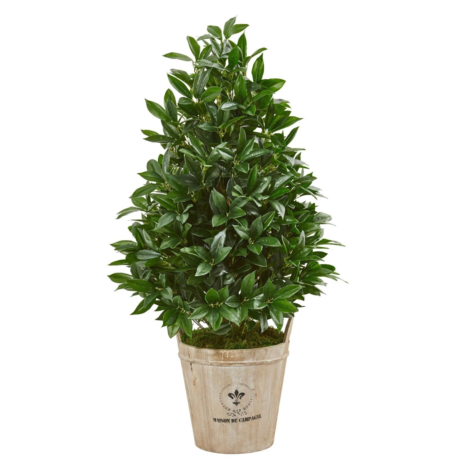 Bring the refreshing aura of the tropics into your home or office with this artificial UV-resistant 39” bay leaf topiary tree. Tucked in a rustic style farmhouse planter filled with green moss, this piece is the ideal decor if your looking for a splash of lush greenery indoors or out. Vertically oriented, you can use this to create a dramatic statement in your entryway, foyer or hallway. Or, place it against the wall to accentuate an elegant art in your office.