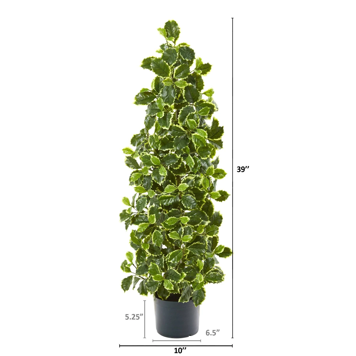 Create an instant focal point with the help of this artificial tree boasting a plethora of holly leaf foliage in variegated hues of green – all of which feel real to the touch. Intricately designed from the finest materials, this 39” tall silk tree would look handsome accenting a home or office entrance.