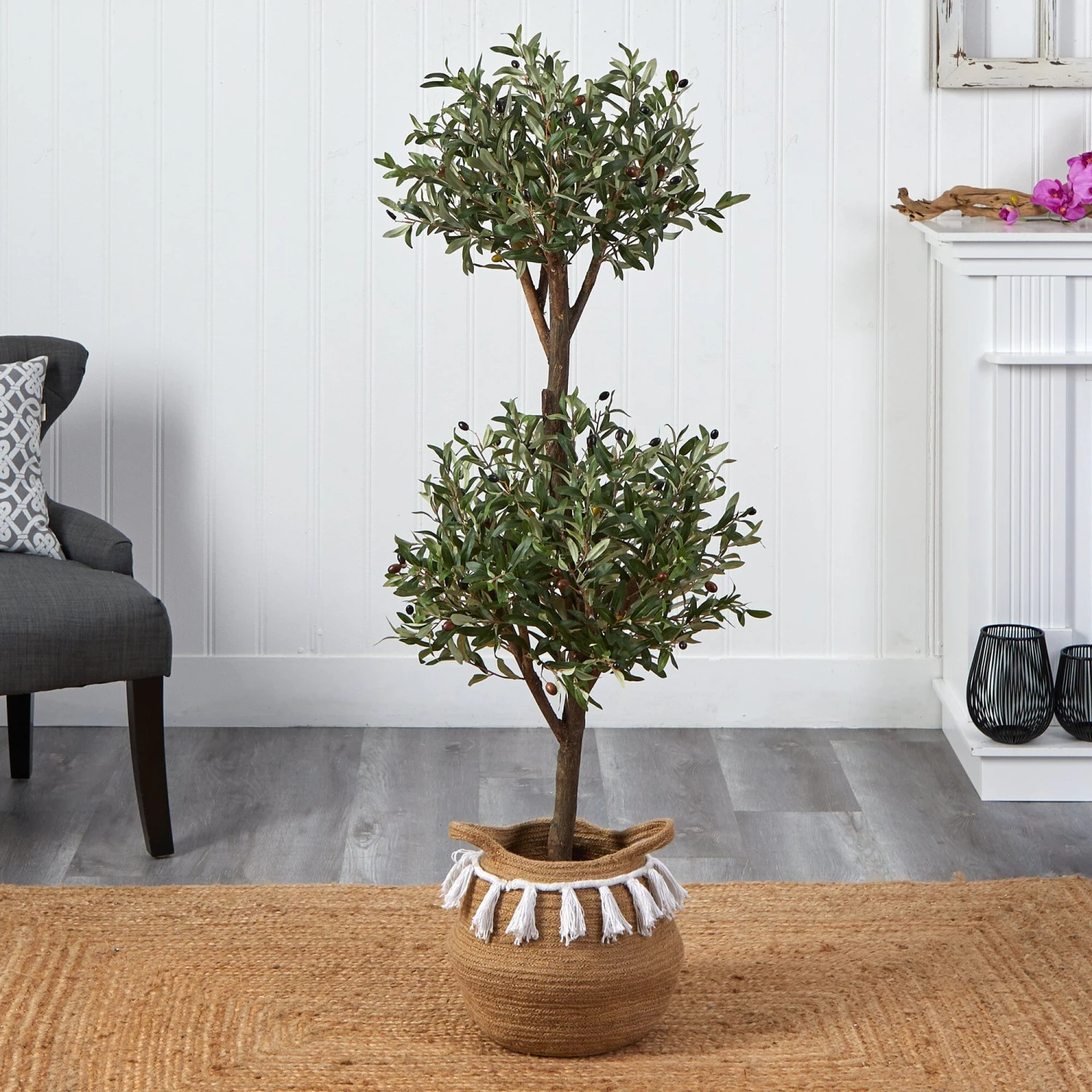 Be the first to review “4.5′ Artificial Olive Double Topiary With Handmade Jute & Cotton Basket With Tassels” Cancel reply