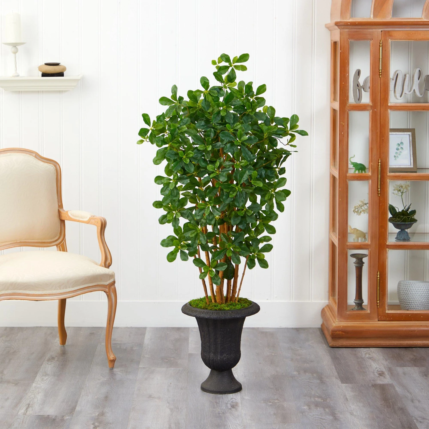 Sip a taste of the exotic Mediterranean landscape with this Black Olive Artificial Tree. So realistic, you’ll be transported to an Italian escape. Bend and shape this faux tree’s 945 olive leaves – that stem from braided trunks – to evoke feelings of a faraway land. Standing at 4.5’, from a charcoal urn (included in height), house in a corner, foyer, or bedroom. Bring different shapes, textures, and depth to spaces that need a fine, gentle touch.