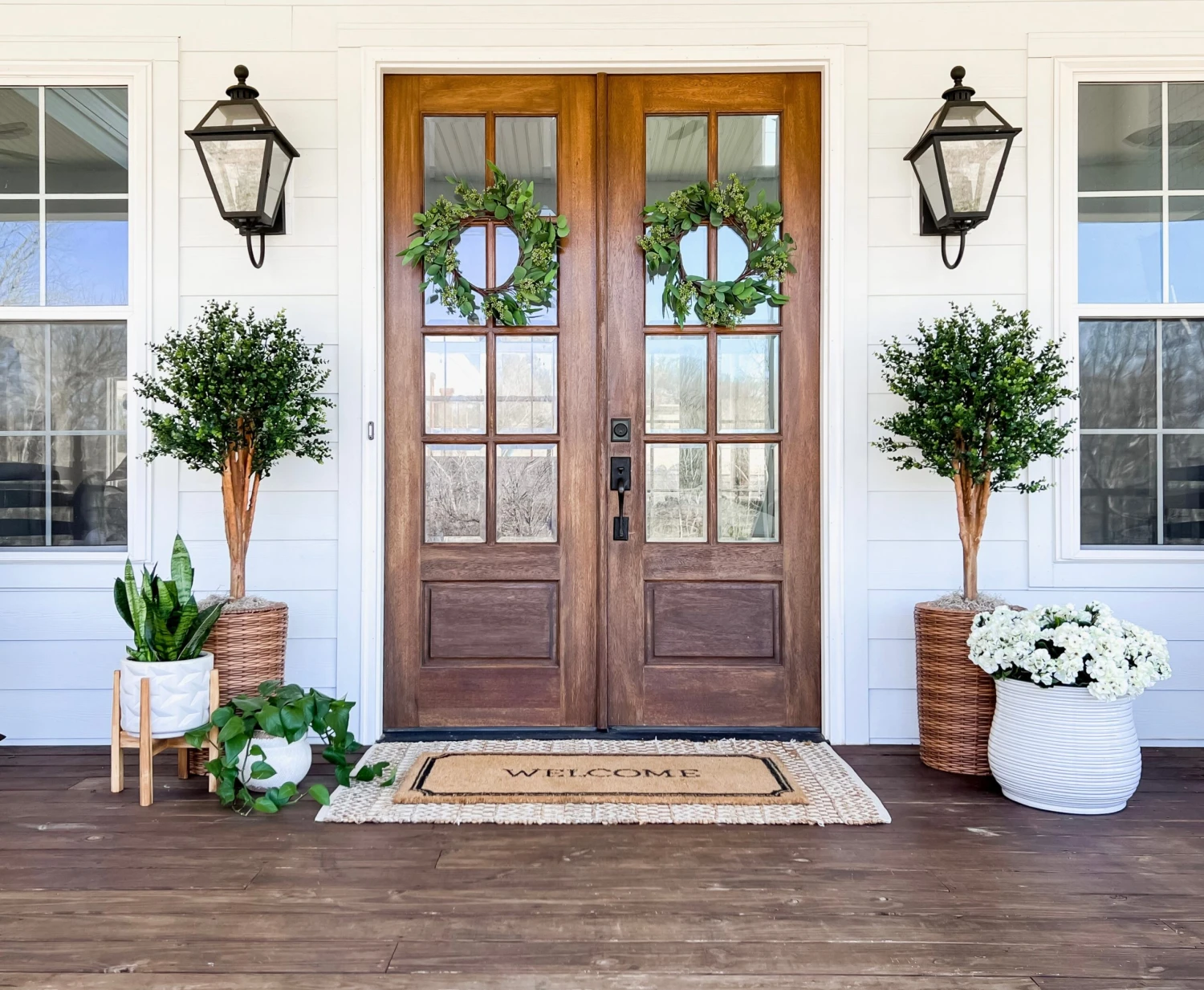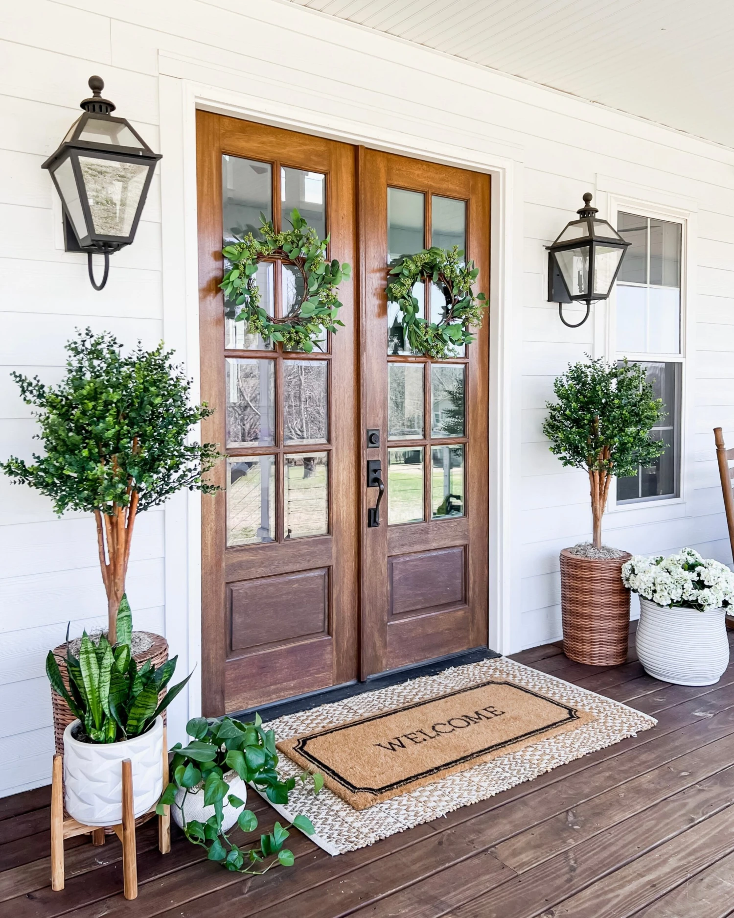 The eucalyptus artificial tree stands at a height of four feet. Its sturdy branches are filled with gorgeous greenery that will vibrantly enhance any interior room’s décor arrangement. Since its foliage is UV-resistant, it can also be used outdoors to line your walkway as an interesting vertical element.