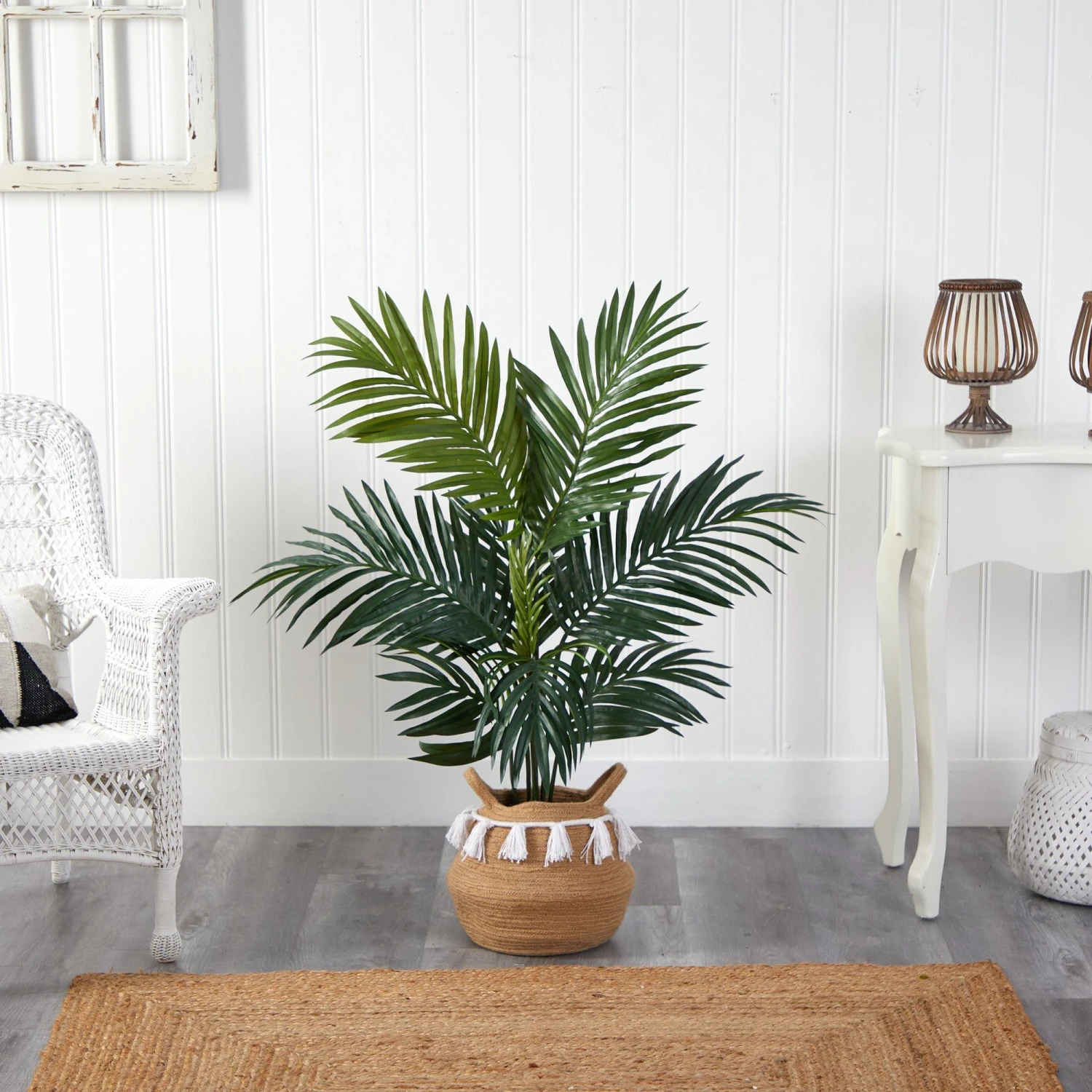Bring clean lines and color to your living areas with this Kentia Artificial Palm. Native to Australia, these palms offer a more refined look than other palms while injecting greenery in any space. Assembled from high-quality materials, curate in any large area that needs a tropical refresh. Standing 4′ from a cotton woven planter (included in height), transform your rooms. Perfect for a living room, bedroom corner, or lonely areas.