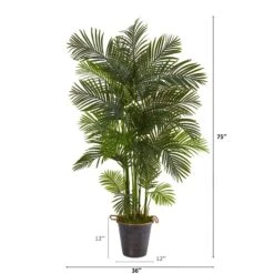 75” Areca Palm Artificial Tree In Decorative Metal Pail With Rope