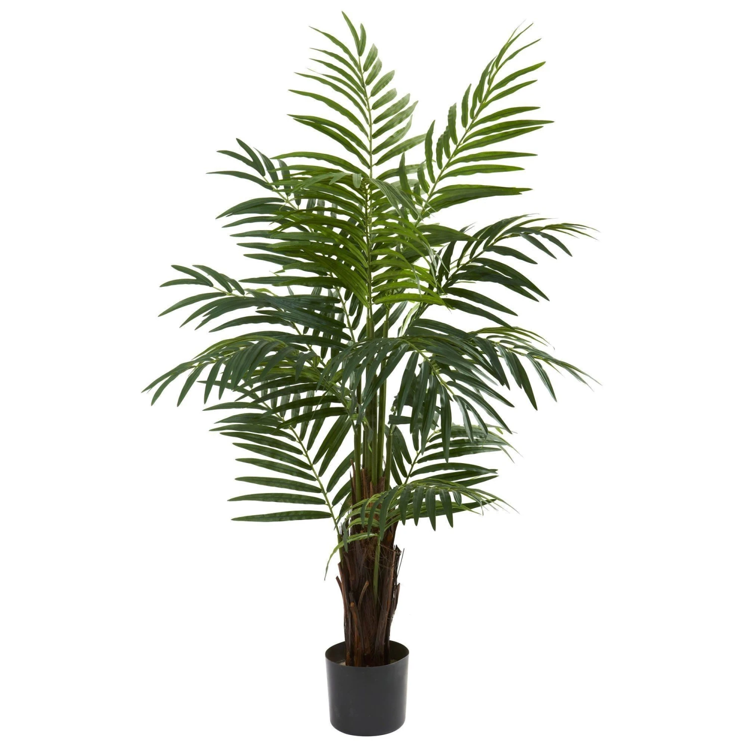 The classic palm tree look, forever captured for your decorating pleasure. This Areca palm tree is four feet in height, with a robust trunk and hundreds of pointed palm leaves that will bring a little sunshine to any area of your home or office. Never needs water or sun, so it truly becomes a “set it and forget it” piece of décor.
