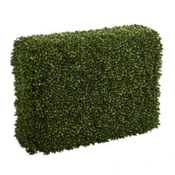 Possessing no pockets of space, the dense greenery of this 30-inch artificial boxwood hedge has been perfectly shaped for a noticeably lush appearance. It can be used to cover up any imperfections on your wall. Or, if you combine several together, you can use it to create a faux hedge wall.