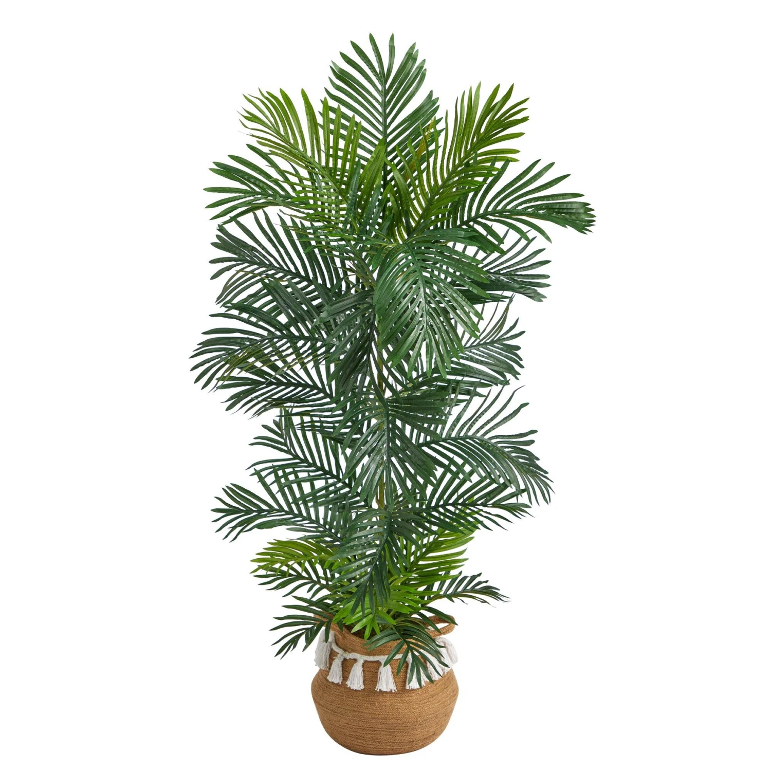 Kick back, relax and stay on vacation mood year-round with this Areca Artificial Palm Tree. Variegated long palm fronds, arch in different directions bringing symmetry and depth to any room. Inspired by nature, add this faux palm tree outside and watch the fronds move with the wind just like the real ones. You can even bend them to fit in your space. Standing 5′ from a boho chic planter (included in height), curate in any indoor/outdoor space. Great for a patio, next to outdoor furniture or in the foyer.