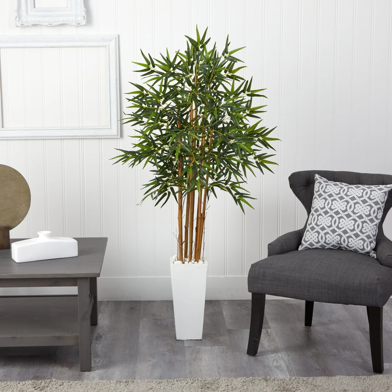 Tall and elegant, this thin faux bamboo tree in planter is perfect for those tight hallways or corners. It brings a refreshing dose of the outdoors into any home or office, and its white tower planter works in with any decor.