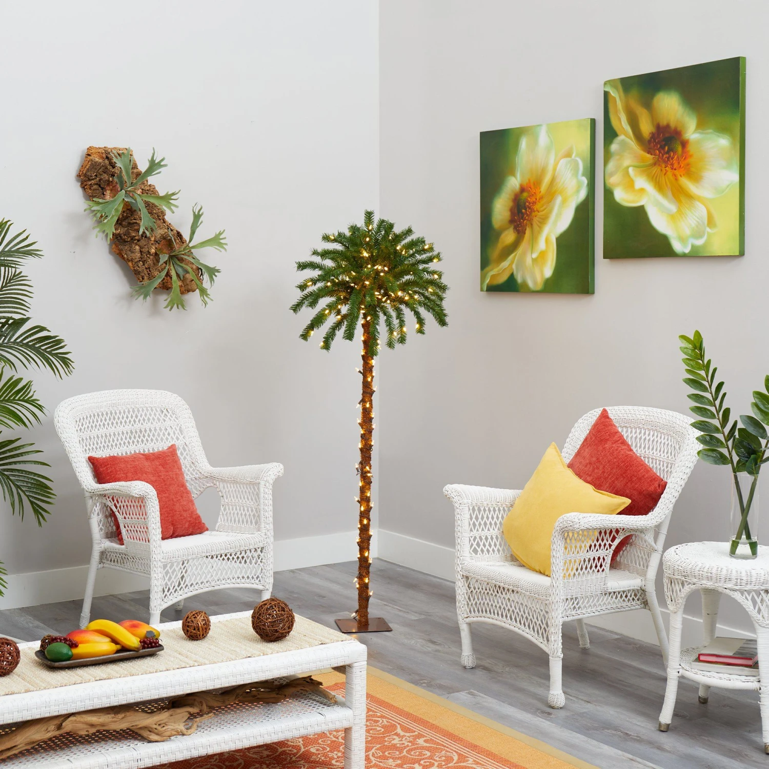 If you’re looking to implement a little fun into your holiday Christmas decor why not opt for this festive artificial Christmas Palm Tree. Intricately designed to mimic the beauty of a realistic palm tree, this tropical-inspired artificial Christmas tree features 59 realistic looking tips, illuminated throughout with 150 clear, pre-strung LED lights to eliminate unsightly tangles. Carefully stabilized on a wooden pole and metal base, this 5’ artificial Christmas palm tree will undoubtedly create a unique Christmas atmosphere all season long.