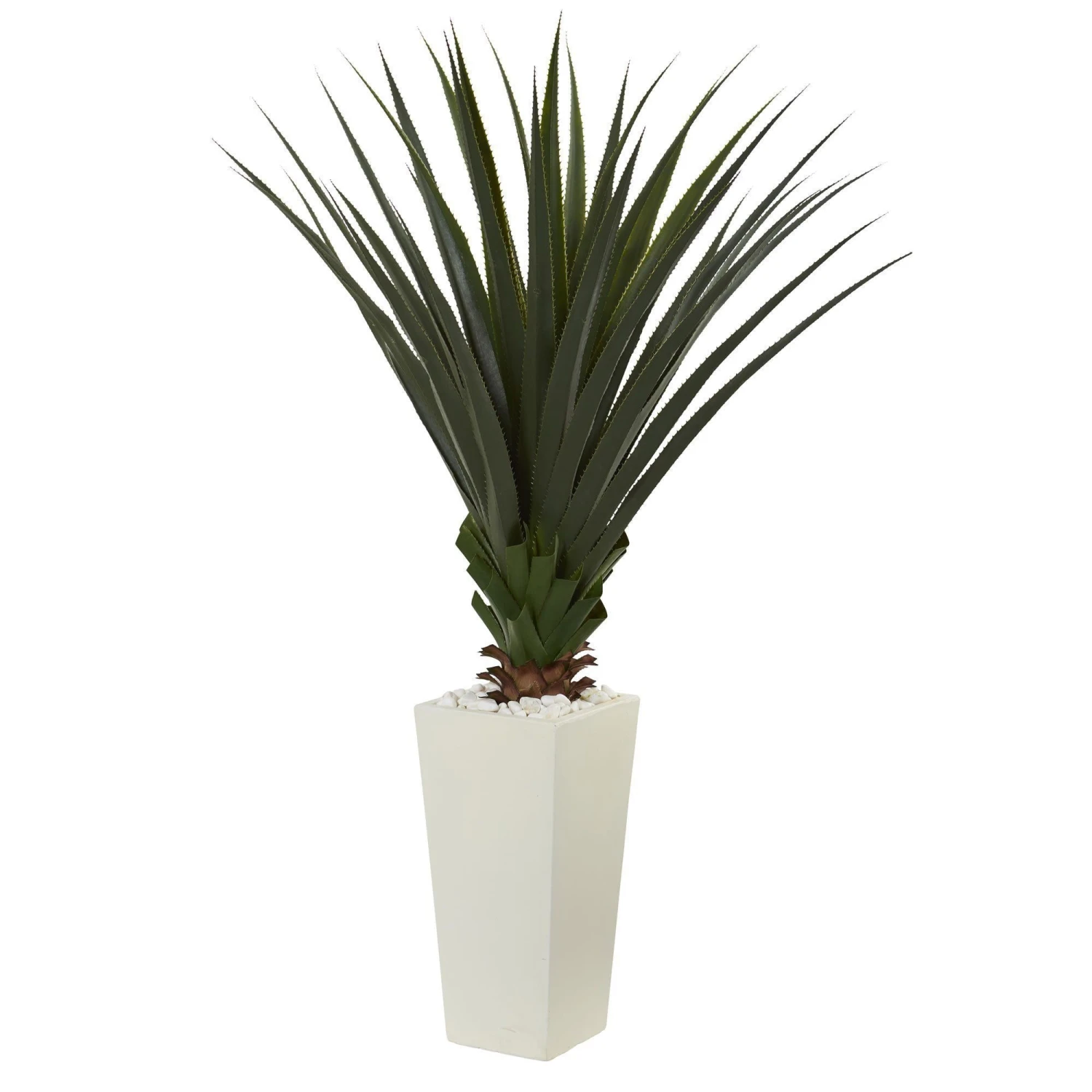 The only thing sharp about this artificial spiky agave plant is how your home is going to look when you add it! This southwest-inspired spiky agave adds some desert flair to your home while remaining safe for children and pets. Comes in a tall white tower planter with real river rocks.