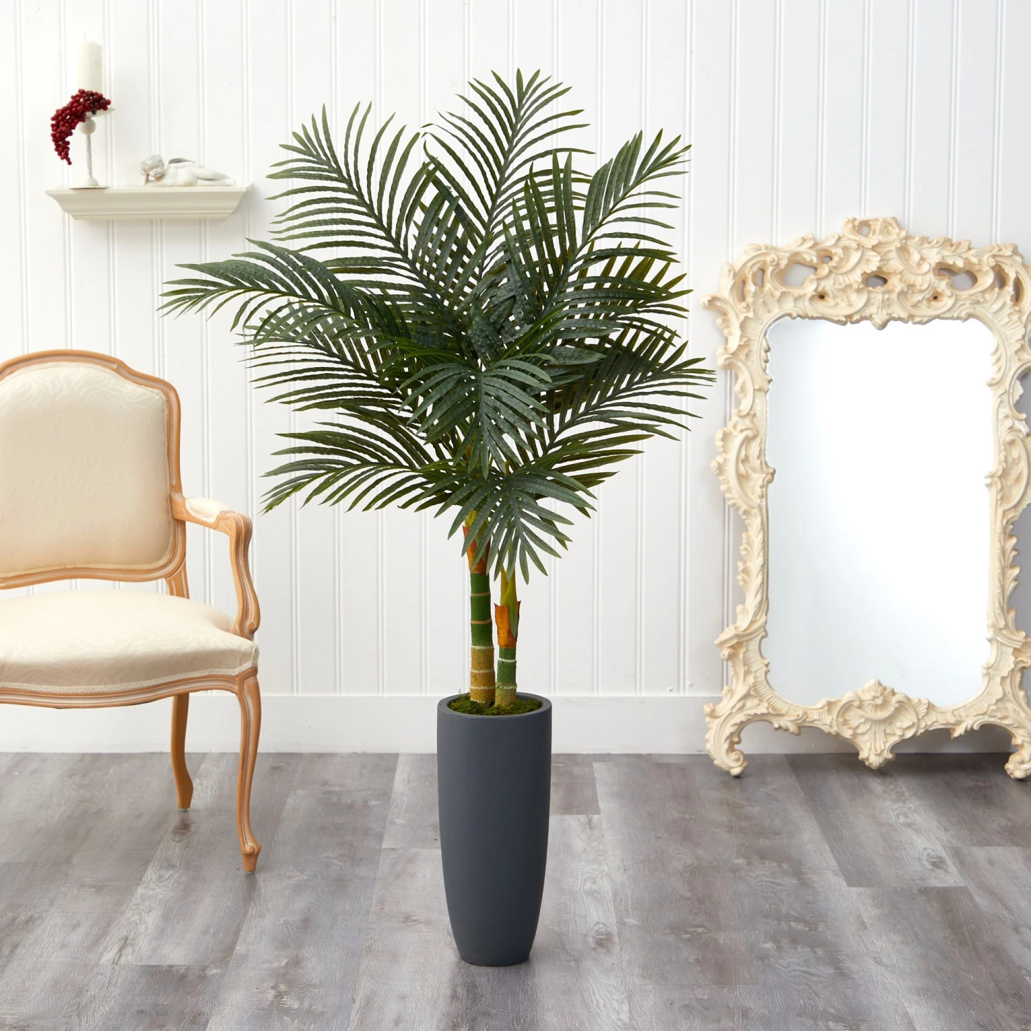 Picture your perfect summer vacation: Where you sun-soak on a hammock, feel the sea breeze hitting your face while sipping on a coconut. Luckily you can now tropic like its hot with this Golden Cane Artificial Palm Tree. It features lifelike lush, green leaves and gorgeous golden palm fronds stemming from a bamboo-like trunk with yellow hues. Standing 58″ from a gray planter, recreate island life in your sunroom, office (we promise smiling co-workers), or guest room with this lovely Golden Cane Artificial Palm Tree. Do you want to feel the sea breeze with this tree?