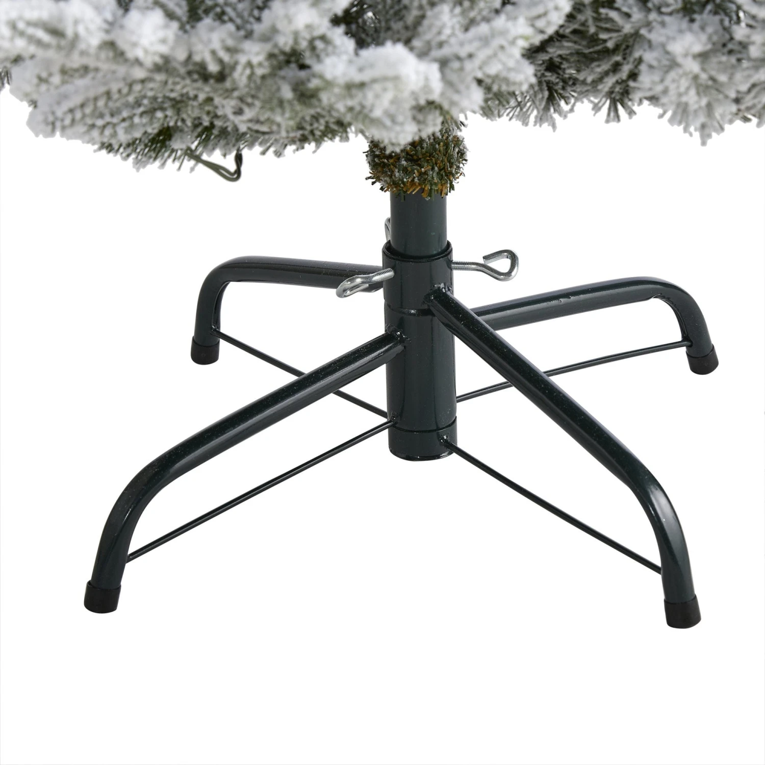 Create your own winter wonderland scene even in a limited space environment with this flocked artificial Christmas tree. Easy and effortless, this winter-inspired artificial Christmas tree boasts a traditional silhouette of realistic looking evergreens made up of 2536 easy-to-bend branches for showcasing your own personalized ornaments – all fully flocked with faux snow to create a picturesque Christmas. Arriving pre-strung with 500 clear LED lights to eliminate tangles and stabilized on a metal stand, this flocked 6’ tall artificial Christmas tree will undoubtedly transform any tight space into a joyous holiday setting for years to come.