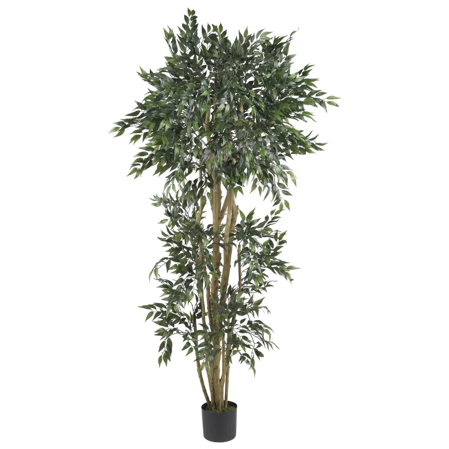A popular shade tree, this handsome Green Ash silk tree will keep your home looking cool and stylish year round. An abundance of crisp green foliage adorns the rugged twisted and intertwined trunks. With well over twenty-five hundred naturally shaded leaves, this attractive masterpiece is always in bloom. Standing 6 feet high, it makes a nice addition to any home foyer or office reception area. A basic black planter is included.