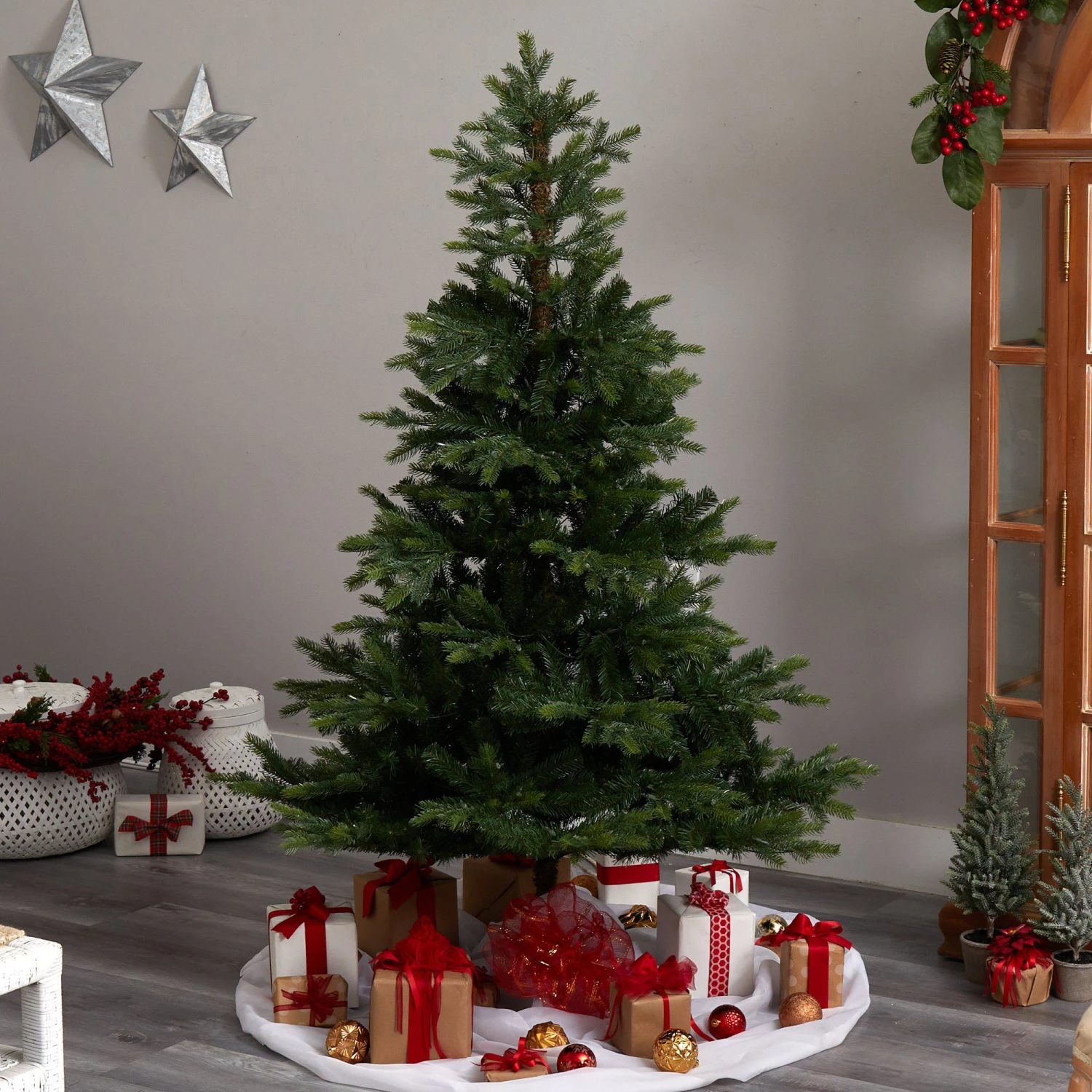 7’ Slim Green Mountain Pine Artificial Christmas Tree With 300 Clear LED Lights