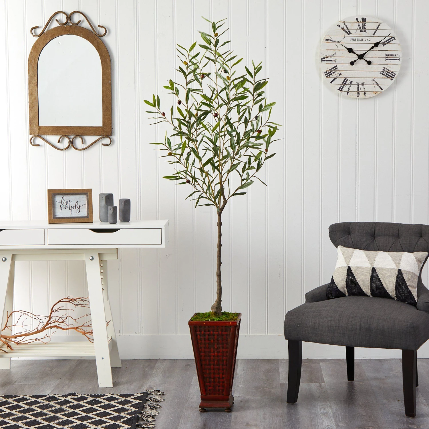 Cure your Italian wanderlust with this Olive Artificial Tree that will make all your Mediterranean dreams come true. Green olive leaves adorn the delicate stems that are accented by faux olives, so realistic you’ll want to eat them. Best of all? Zero Maintenance! This rustic faux olive tree stands 69″ from a decorative planter (included in height), a Bello addition for tight spaces. Place in apartments, low ceiling rooms or bathrooms and instantly transform your space.