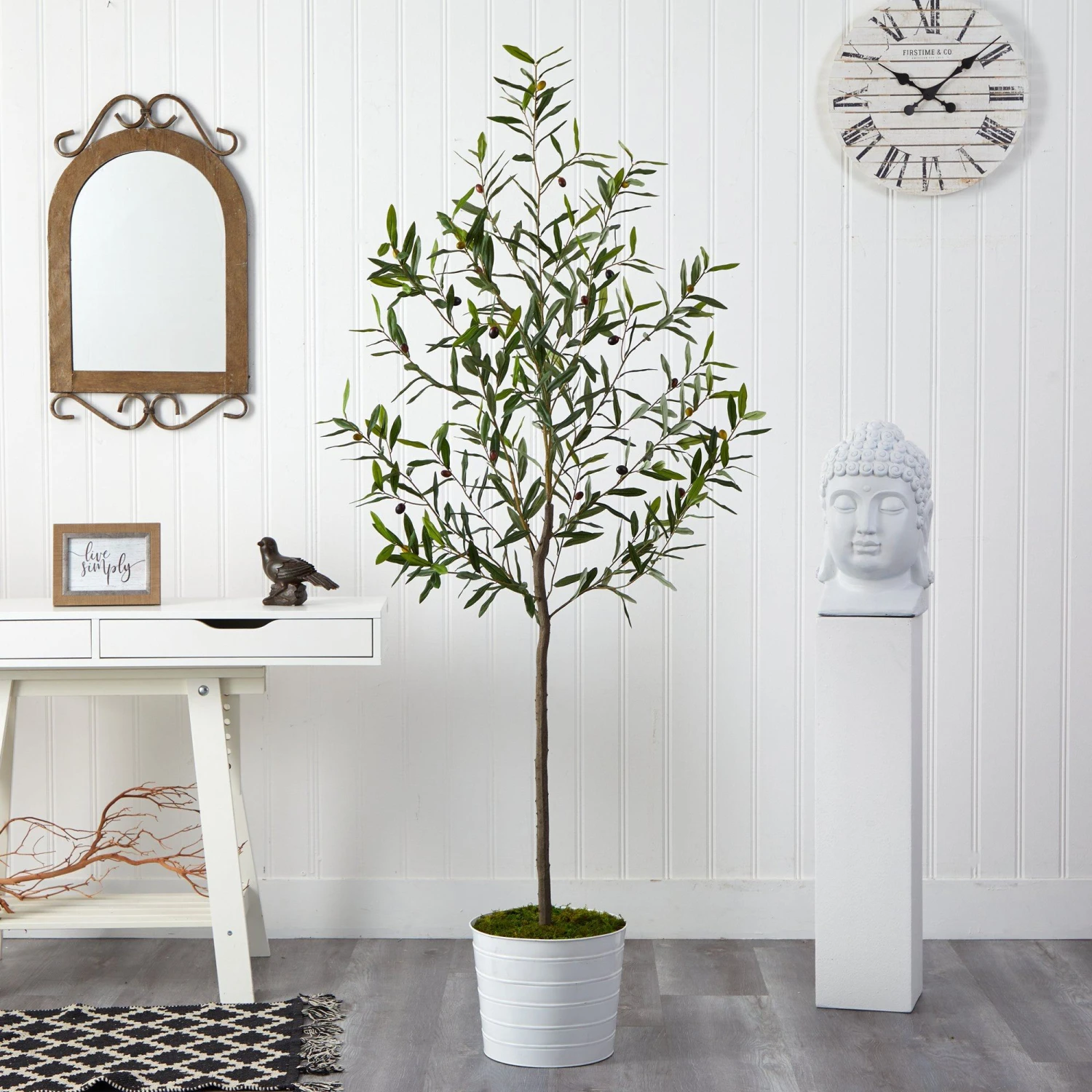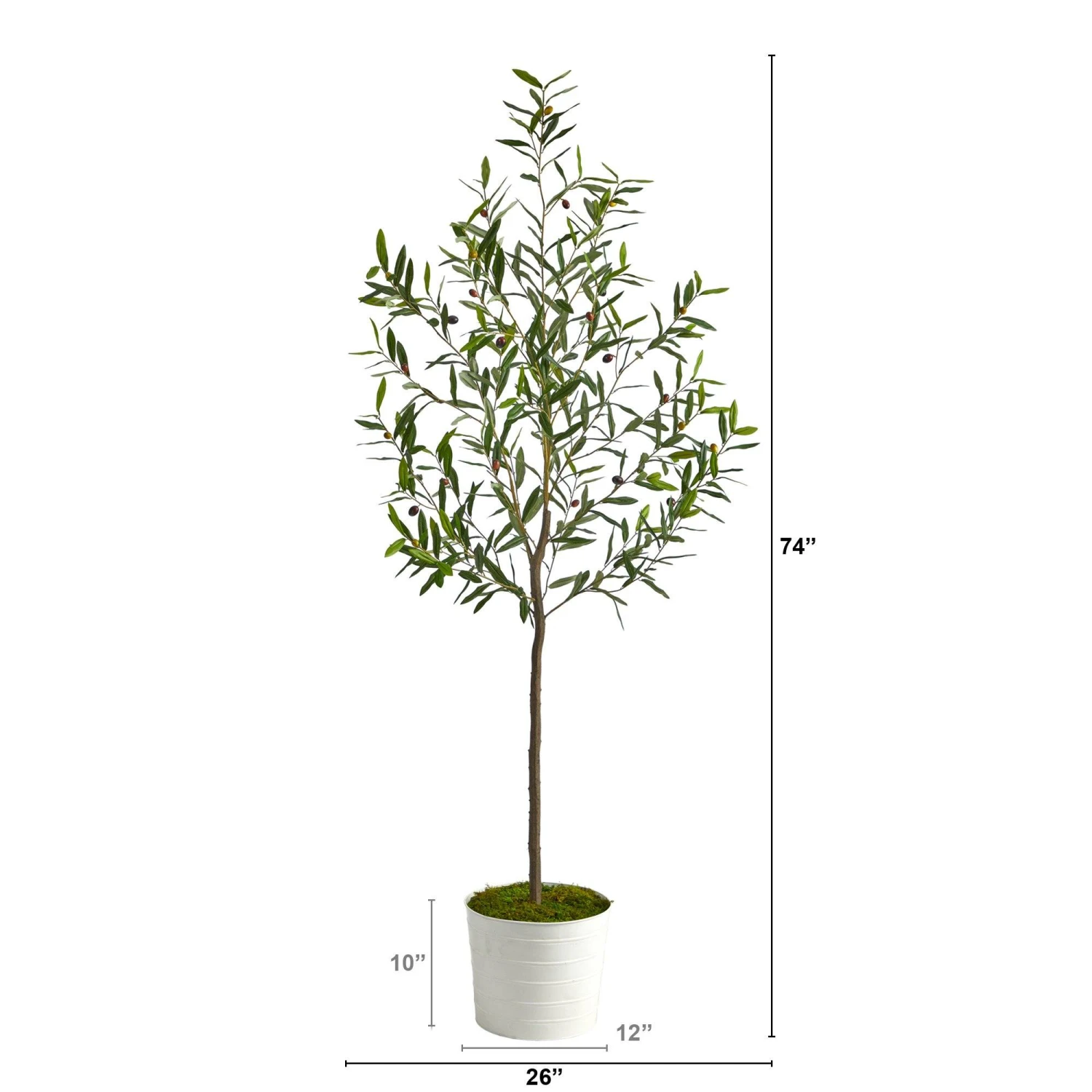 Cure your Italian wanderlust with this Olive Artificial Tree that will make all your Mediterranean dreams come true. Green olive leaves adorn the delicate stems that are accented by faux olives, so realistic you’ll want to eat them. Best of all? Zero Maintenance! This rustic faux olive tree stands 70″ from a white tin planter (included in height), a Bello addition for tight spaces. Place in apartments, low ceiling rooms or bathrooms and instantly transform your space.