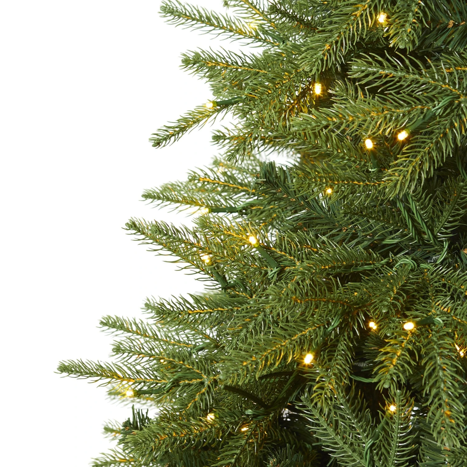 Evoke hints of a traditional Christmas setting with the help of this natural looking artificial Christmas tree. Intricately designed to showcase an all-natural look in appearance, its robust silhouette is made up of 3470 easy-to-bend branch tips, perfect for showcasing all your favorite holiday ornaments. Arriving pre-strung with 700 clear LED lights to eliminate unsightly tangles and carefully stabilized on a metal stand, this impressive 8’ artificial Christmas tree will undoubtedly be a great addition to holiday decor – year after year.