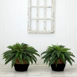 23″ Artificial Boston Fern Plant With Handmade Jute & Cotton Basket DIY KIT – Set Of 2