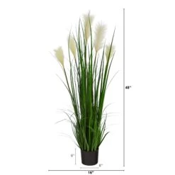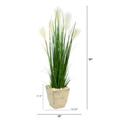 4.5’ Wheat Plum Grass Artificial Plant In Country White Planter