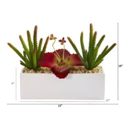13” Mixed Succulent And Cactus Artificial Plant In Decorative Planter
