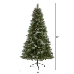 7’ White Mountain Pine Artificial Christmas Tree With 400 Clear LED Lights And Pine Cones