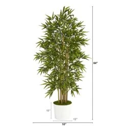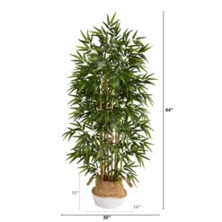 64” Bamboo Tree With Natural Bamboo Trunks In Boho Chic Handmade Cotton & Jute White Woven Planter