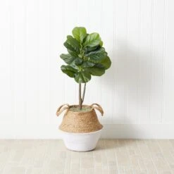 3′ Artificial Fiddle Leaf Fig Tree With Handmade Cotton & Jute Woven Basket DIY Kit