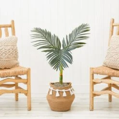 3′ Artificial Golden Cane Palm Tree With Handmade Jute & Cotton Basket With Tassels DIY KIT