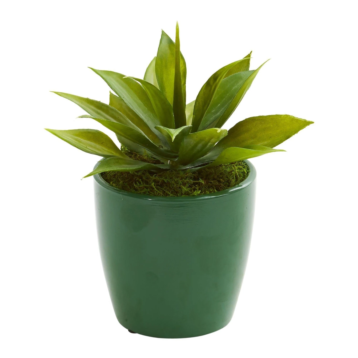 Stage a verdant outdoor style in your home or office with these artificial mini agaves. These southwestern-inspired succulents showcase sharp, long green leave that rise upward from a bed of green faux moss placed within a green planter. With this three piece set, you can either place them together near an entryway on a console, or mix and match them with different decorative pieces in your kitchen, dining, or living room.