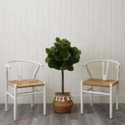4′ Artificial Fiddle Leaf Fig Tree With Handmade Jute & Cotton Basket With Tassels DIY KIT- Set Of 2