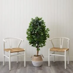 4.5′ Artificial Ficus Tree With Double Trunk In A Handmade Cotton & Jute Basket DIY KIT – Set Of 2