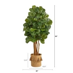 5’ Fiddle Leaf Fig Artificial Tree In Handmade Black And White Natural Jute And Cotton Planter