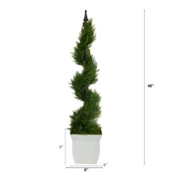 4’ Cypress Spiral Topiary Artificial Tree In White Metal Planter