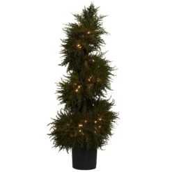 44” Cypress Spiral Topiary Artificial Tree In Black Metal Planter