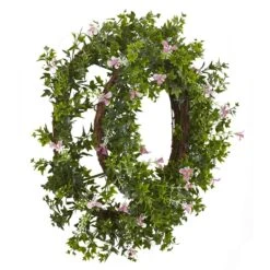 15” Cherry Blossom And Cactus Artificial Arrangement In Trio Metal Vase
