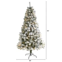 6’ Slim Flocked Montreal Fir Artificial Christmas Tree With 250 White LED Lights And 743 Branches